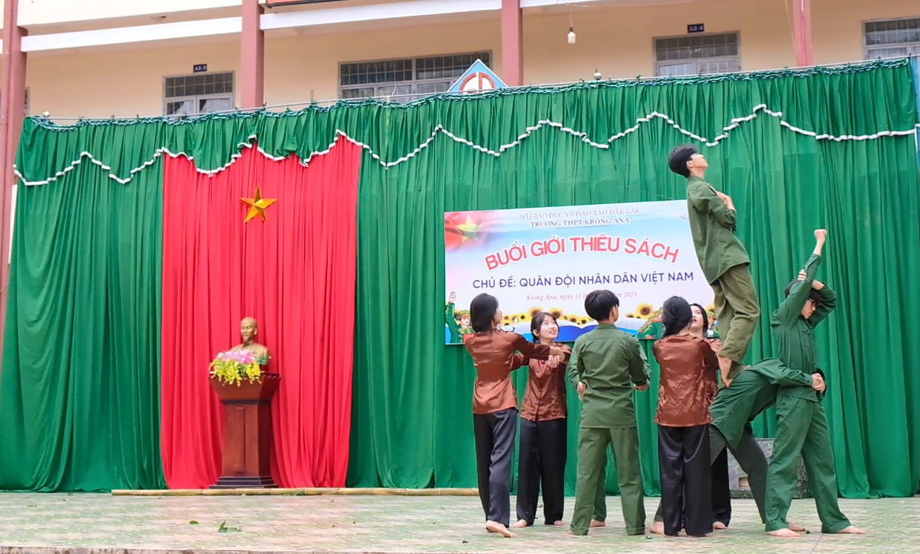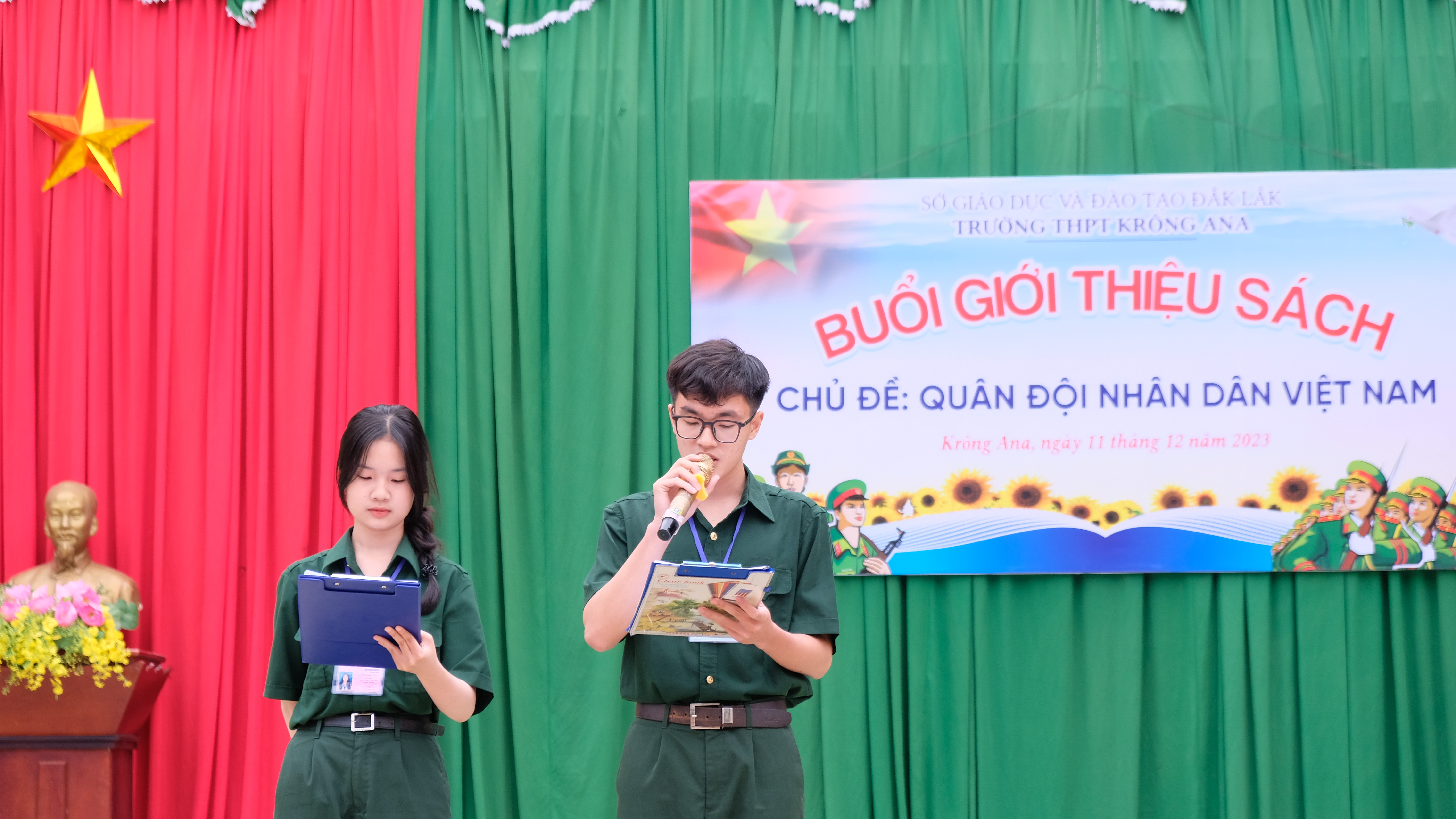 Hưởng ứng kỉ niệm 79 năm ngày thành lập Quân đội nhân dân Việt Nam. Sáng 11/12/2023 Thư viện trường THPT Krông Ana tổ chức buổi giới thiệu sách chủ đề “Quân Đội Nhân Dân Việt Nam” nhằm tri ân các anh hùng lực lượng vũ trang nhân dân Việt Nam và bày tỏ lòng biết ơn sâu lặng đối với Bác Hồ và các anh hùng liệt sĩ đã hy sinh vì tổ quốc, mang lại cuộc sống ấm no, hạnh phúc cho nhân dân ta.