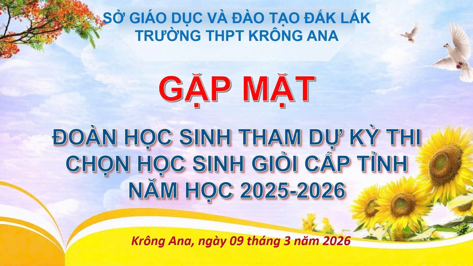 Chiều ngày 09/3/2026, Trường THPT Krông Ana đã tổ chức buổi gặp mặt đoàn học sinh tham dự Kỳ thi chọn học sinh giỏi cấp tỉnh năm học 2025–2026.