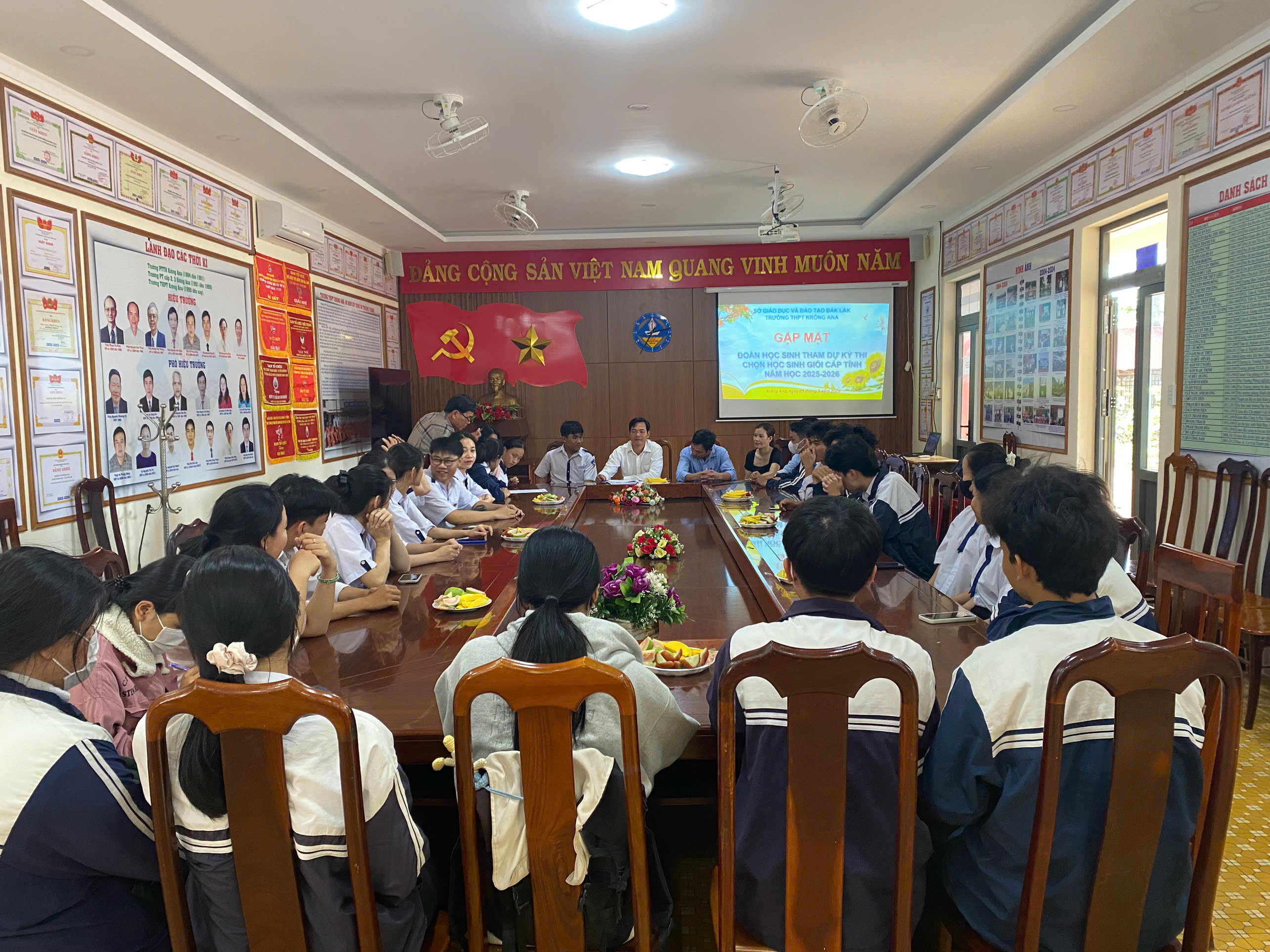 Tham dự buổi gặp mặt có đại diện Ban giám hiệu nhà trường, các thầy cô giáo bồi dưỡng đội tuyển và 32 em học sinh được lựa chọn tham dự kỳ thi năm nay. Đây là những học sinh tiêu biểu, có thành tích học tập xuất sắc và đã được nhà trường, các thầy cô tích cực bồi dưỡng trong thời gian qua.
