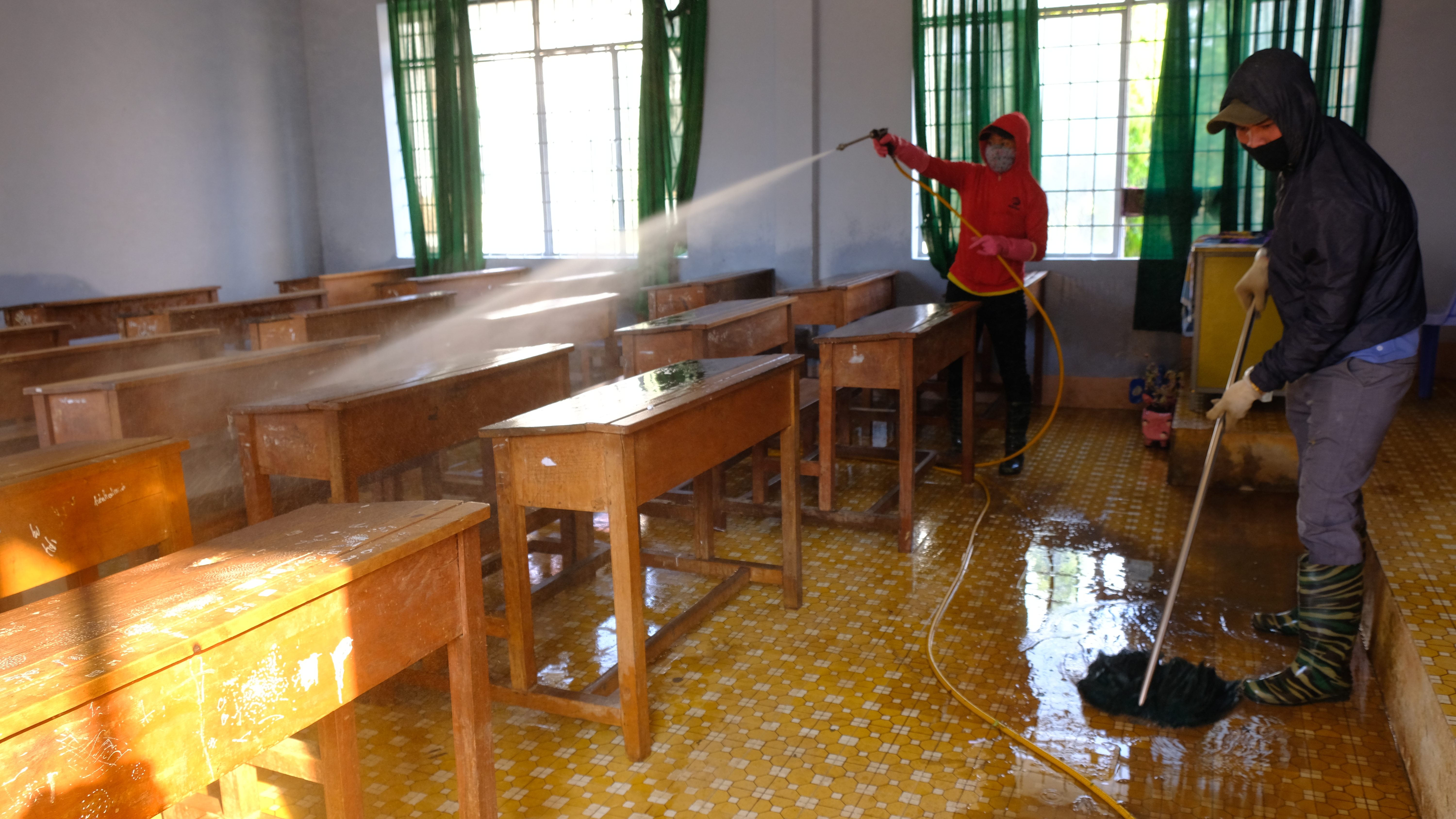 Vệ sinh, khử khuẩn cổng trường