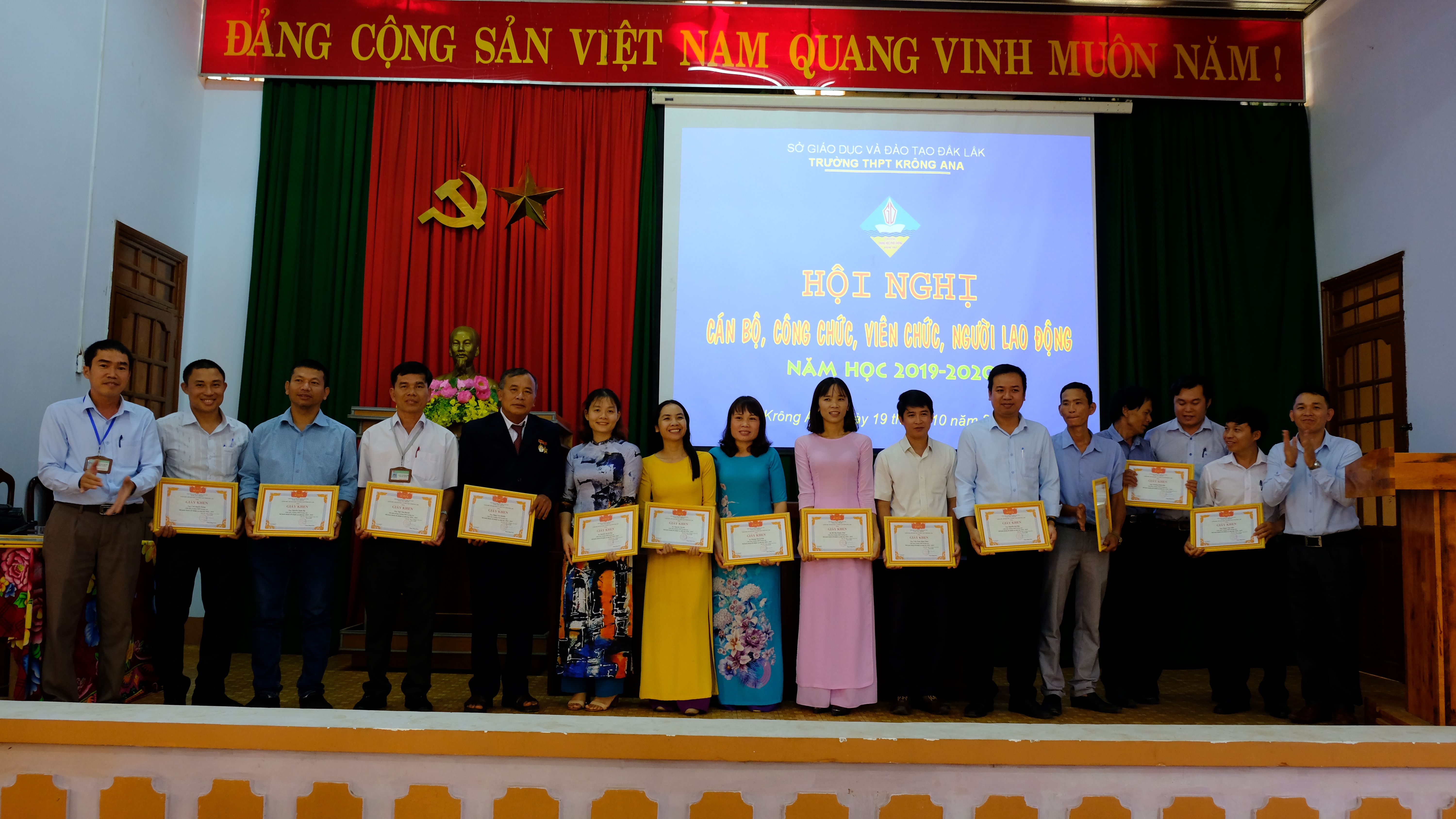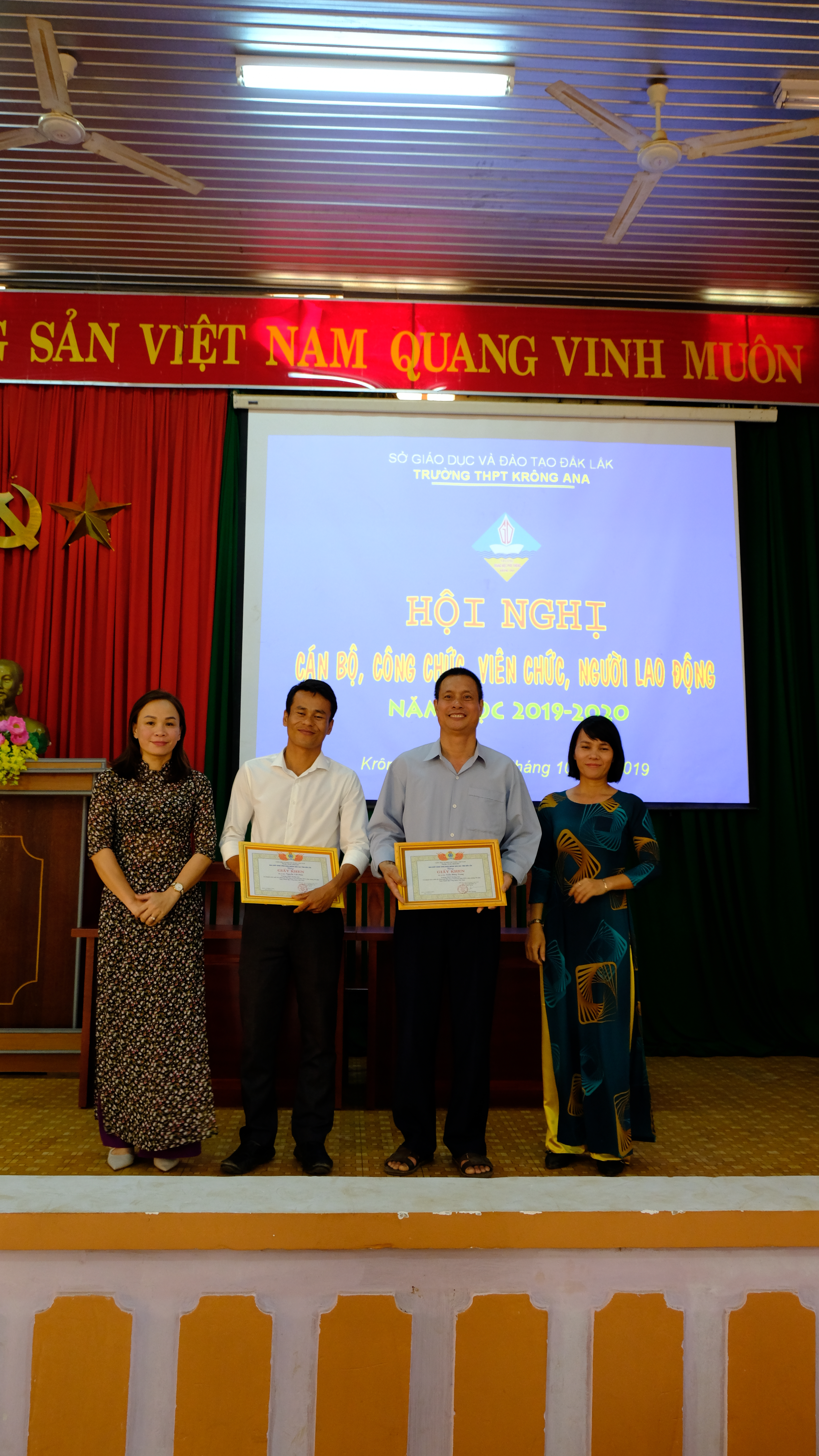 Tiếp nối phần thảo luận và giải trình ý kiến của Hội nghị, thầy Phạm Văn Tiền , Chủ tịch công đoàn trường THPT Krông Ana, phát động và ký giao ước thi đua. Các cán bộ, công chức, viên chức đạt thành tích cao trong năm học 2018 – 2019 đã được tuyên dương và tôn vinh trọng thể.
