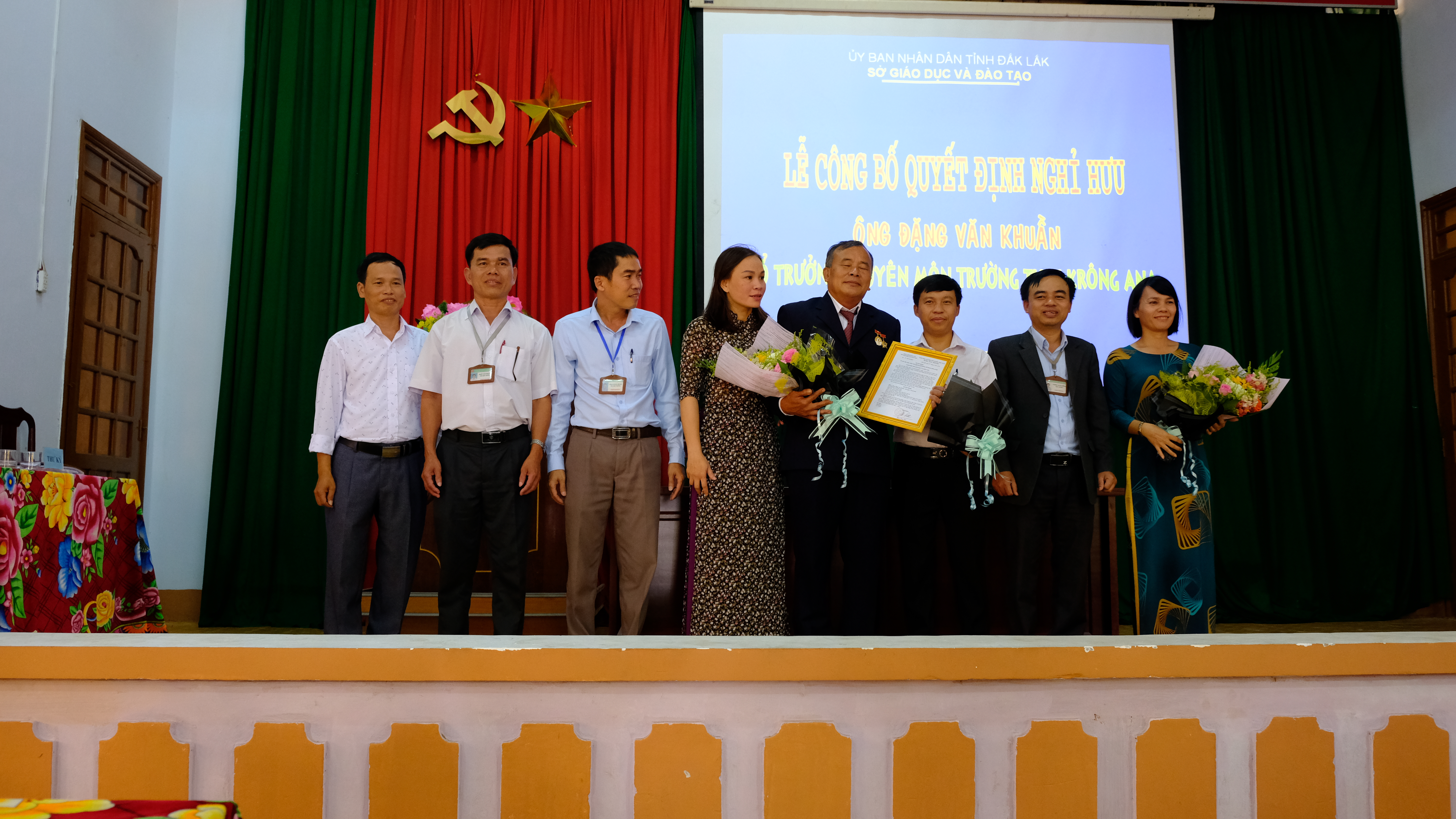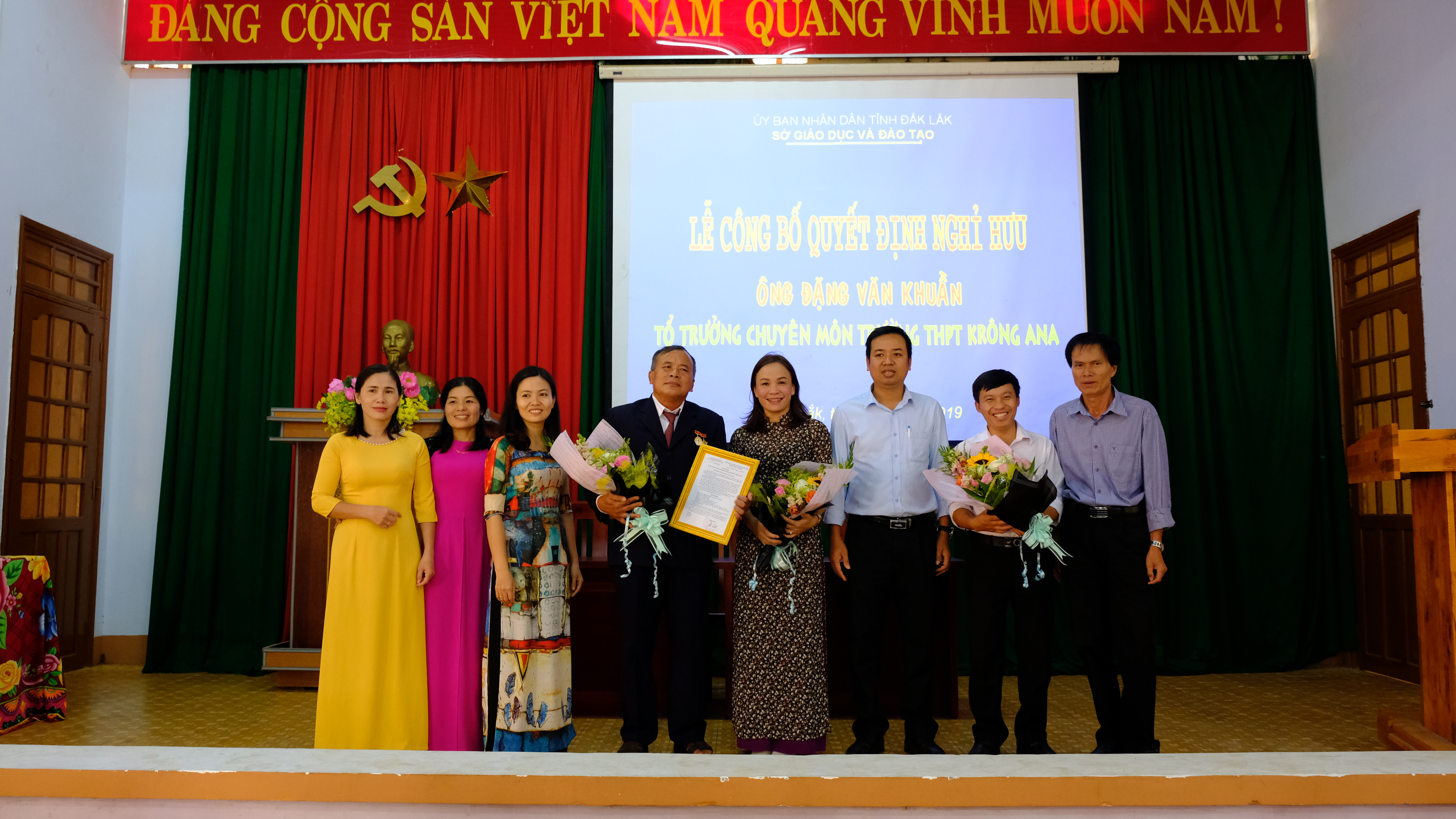 Kết thúc chương trình Hội nghị là công bố quyết định nghỉ hưu và lễ chia tay thầy Đặng Văn Khuần, người thầy giáo gắn bó 37 năm với nghề giáo và 35 năm đối với ngôi trường THPT Krông Ana. Lễ chia tay đã diễn ra thật trang trọng và xúc động trong lời phát biểu của thầy và các thế hệ đồng nghiệp. Kính chúc thầy sức khỏe và mãi là chỗ dựa cho thế hệ trẻ trong sự nghiệp trồng người.