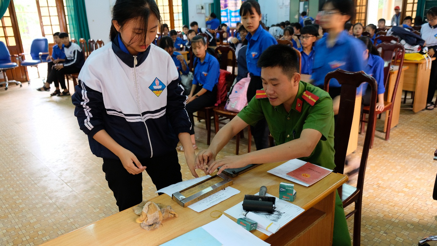 Các bạn học sinh đã tham gia làm CMND đầy đủ và nghiêm túc, thực hiện đúng hướng dẫn của các cán bộ công an.
