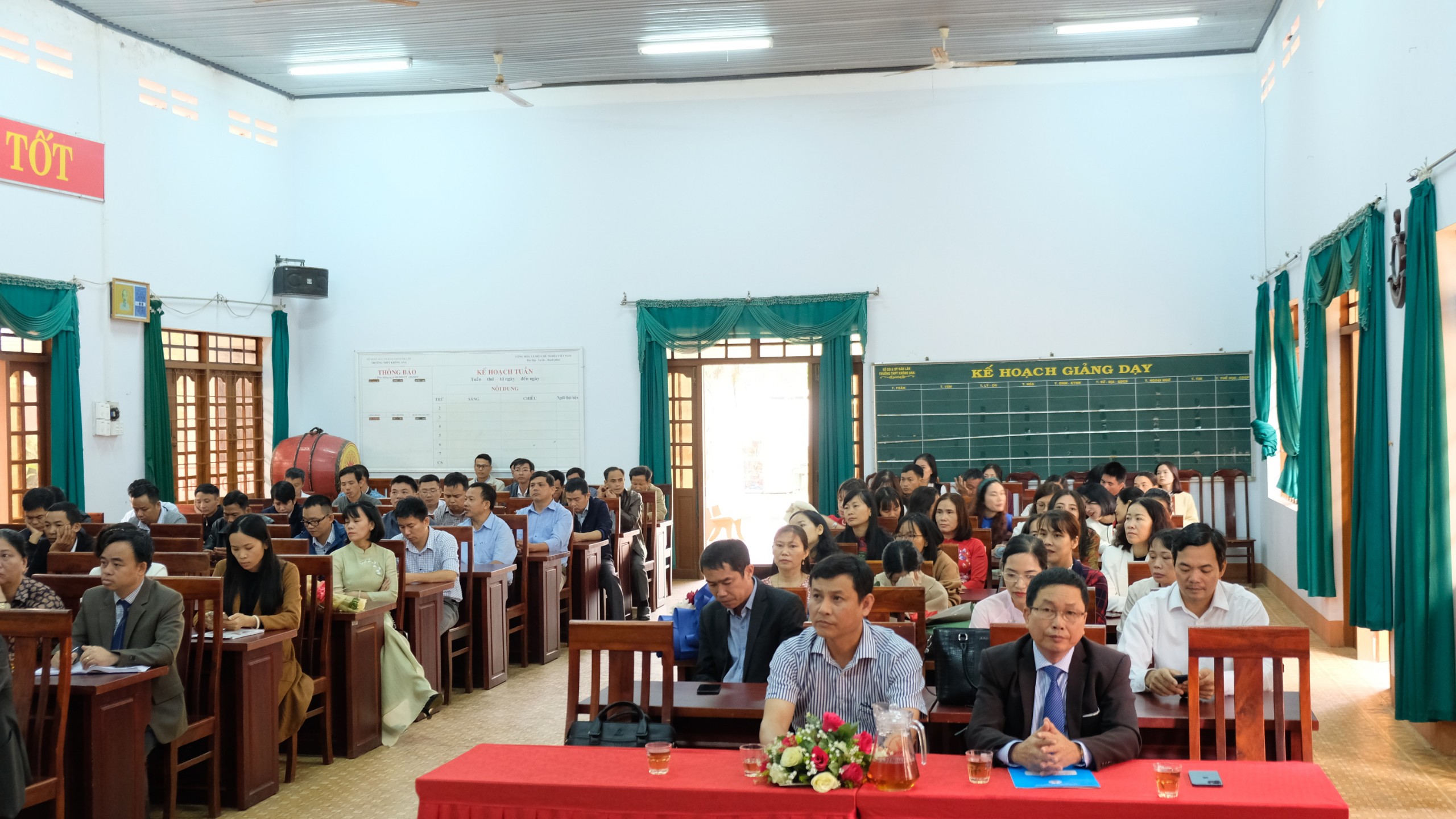 Dự chương trình Công bố quyết định có đồng chí Lưu Tiến Quang – Phó Giám đốc Sở Giáo dục và Đào tạo, các đồng chí lãnh đạo các phòng chuyên môn, nghiệp vụ Sở giáo dục; Ban đại diện cha mẹ học sinh của trường cùng đông đủ cán bộ, giáo viên, nhân viên và người lao động nhà trường.