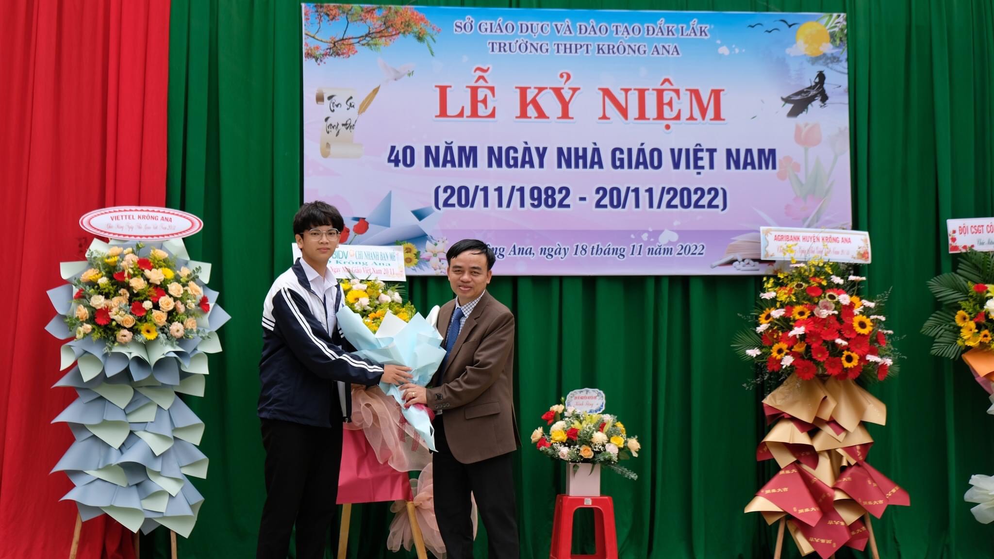 Hôm nay em rất vinh dự được đứng đây, dưới mái trường THPT Krông Ana thân yêu này để bày tỏ những tình cảm của mình đối với các thầy cô giáo trong ngày hiến chương nhà giáo 20/11 đầy trang trọng.