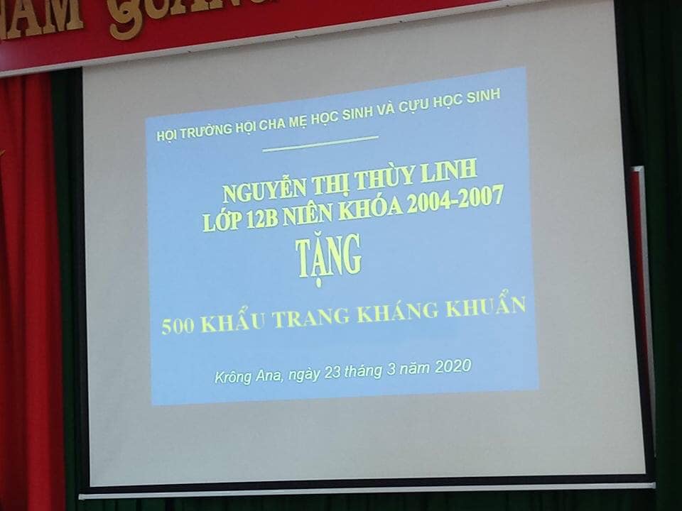 Cựu học sinh Trường THPT Krông Ana khóa 94-97 ủng hộ khẩu trang cho học sinh Trường THPT Krông Ana đến trường trong mùa dịch Covid-19.