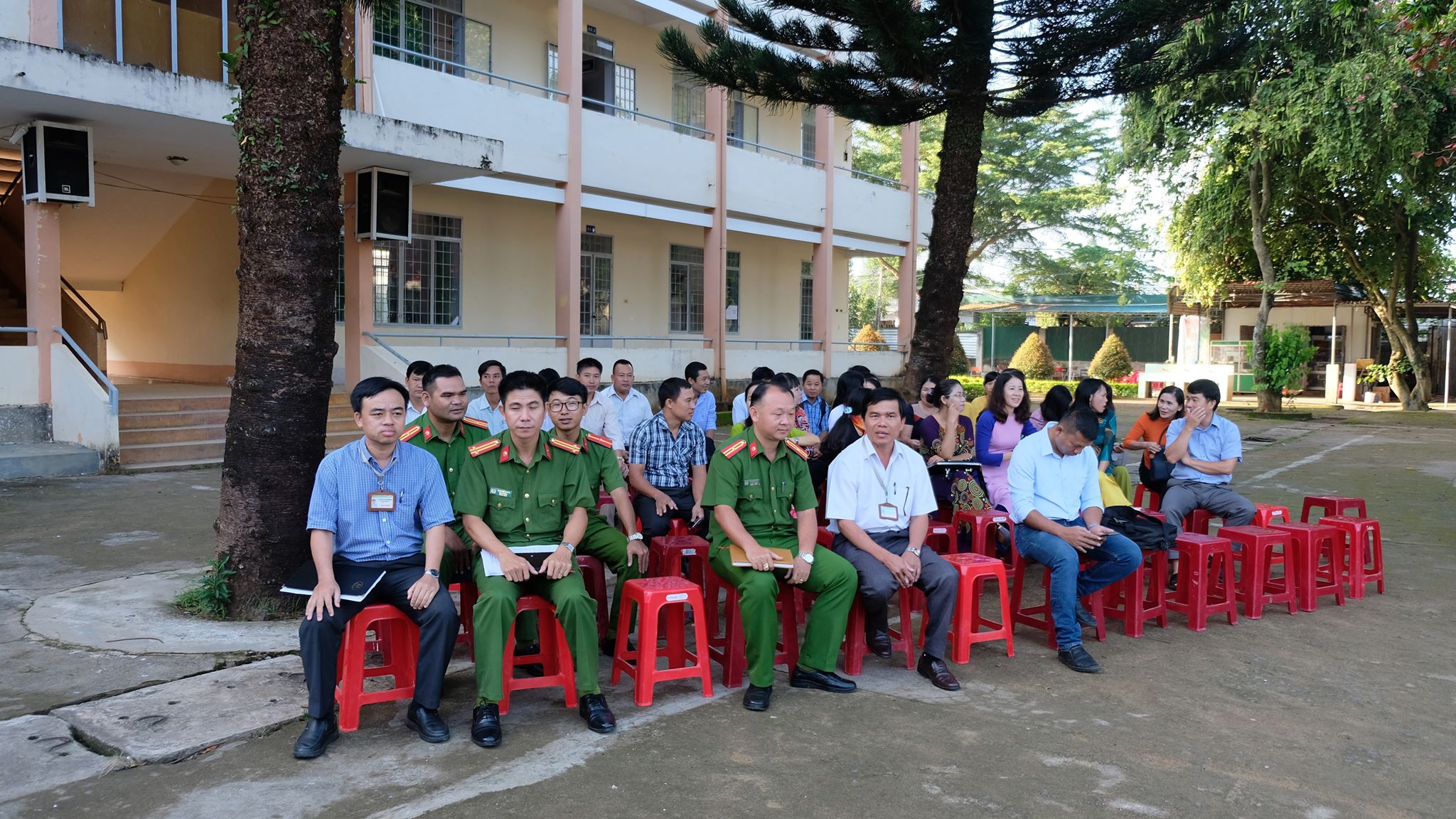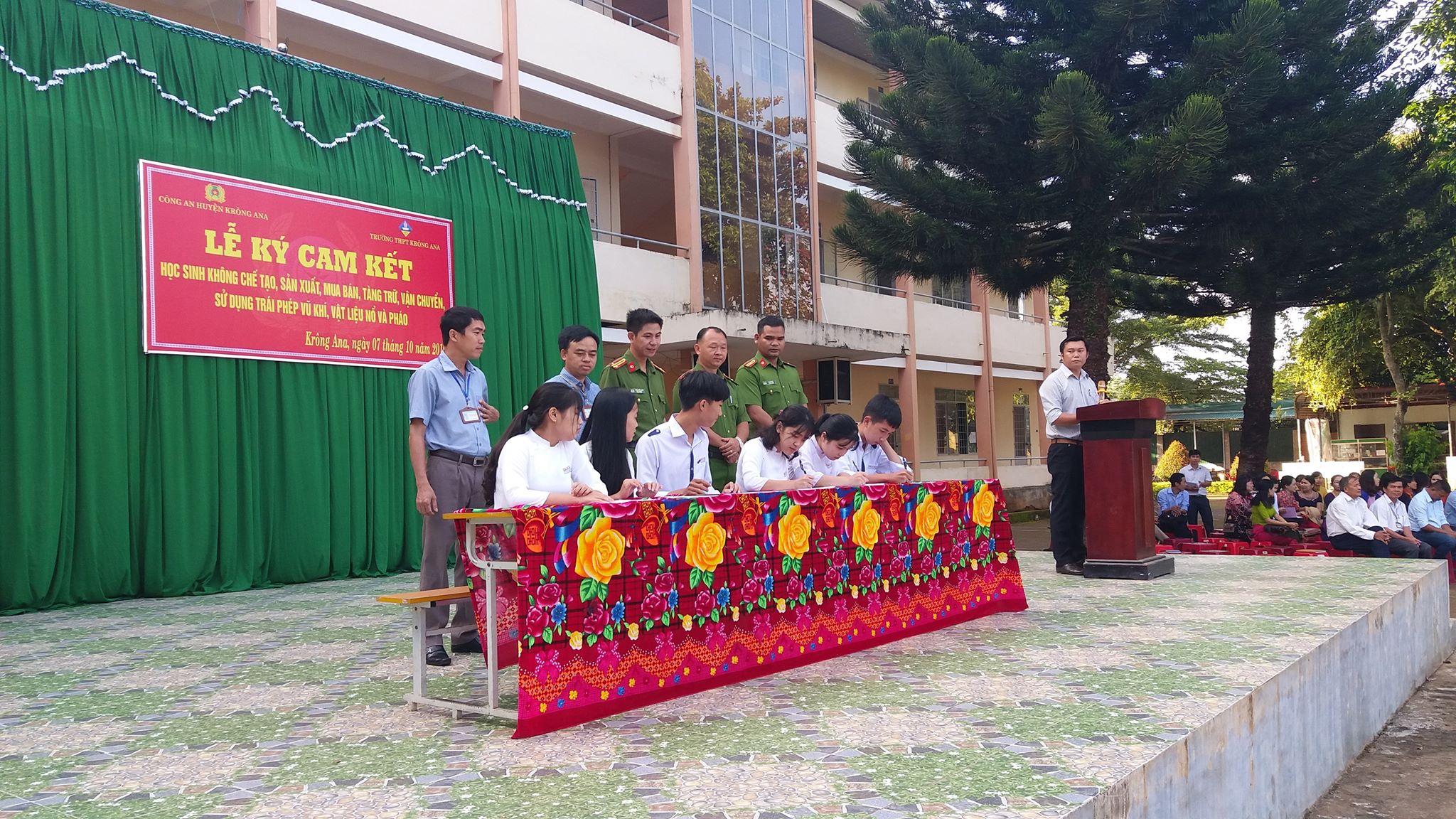 Toàn trường đã được nghe đ/c Y Châu Byă cán bộ đội cảnh sát quản lý hành chính về trật tự xã hội thuộc Công an huyện tuyên truyền, phổ biến về phòng chống tội phạm, vũ khí, vật liệu nổ và pháo. Tiếp đó là lễ ký cam kết của Đại diện nhà trường và học sinh các khối.