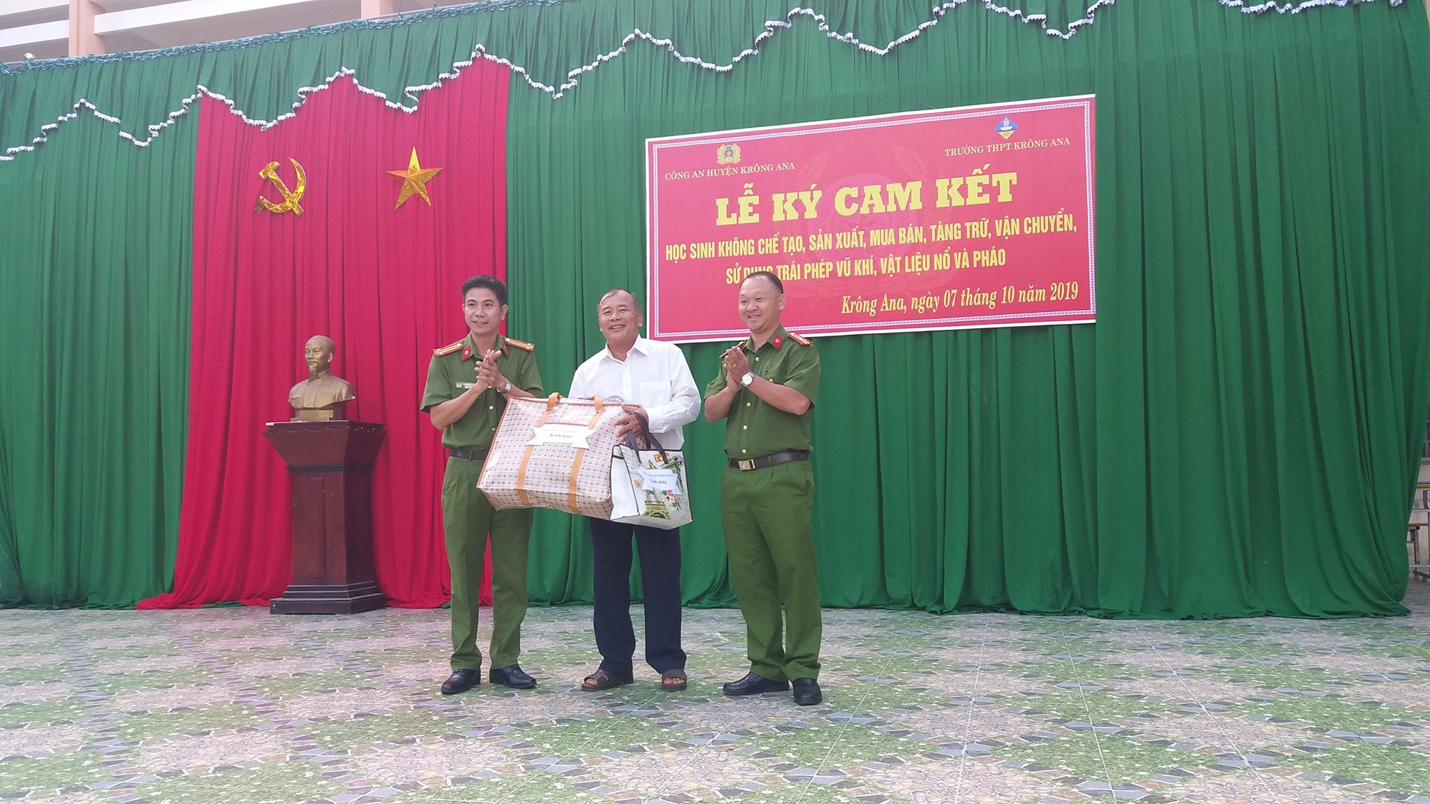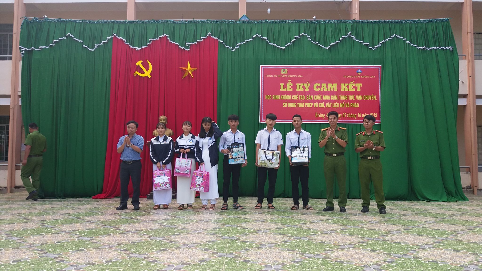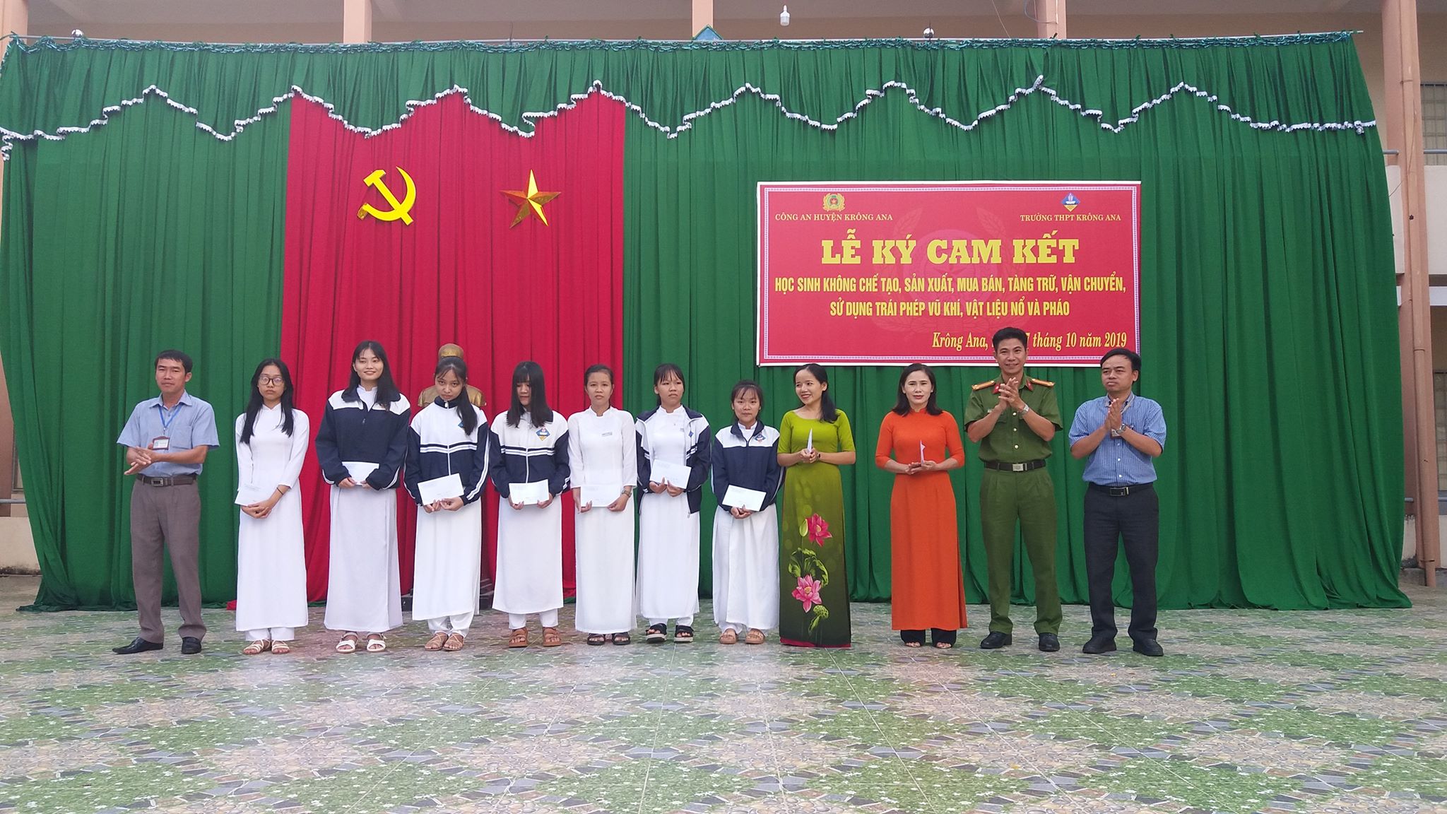 Sáng nay, ngày 7 tháng 10 năm 2019, trong buổi lễ chào cờ đầu tuần, với sự tham dự của đại diện Công an huyện, BGH nhà trường, các thầy cô GVCN và HS toàn trường, Trường THPT Krông Ana đã tham gia ký cam kết HS không chế tạo, sản xuất, mua bán, tàng trữ, vận chuyển, sử dụng trái phép vũ khí, vật liệu nổ và pháo.